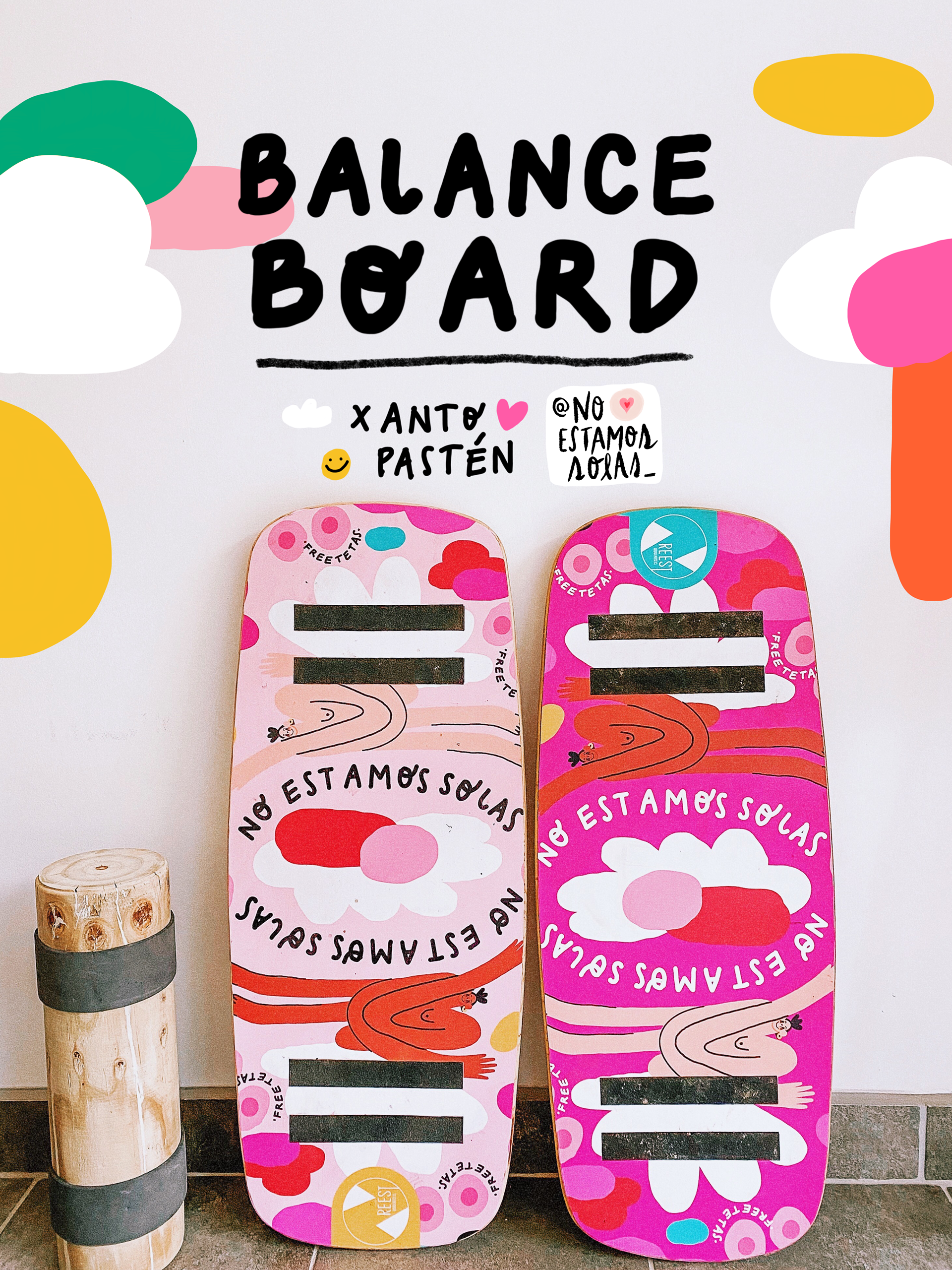 colaboración con proyecto noestamossolas y reest chile - ilustración para balance board