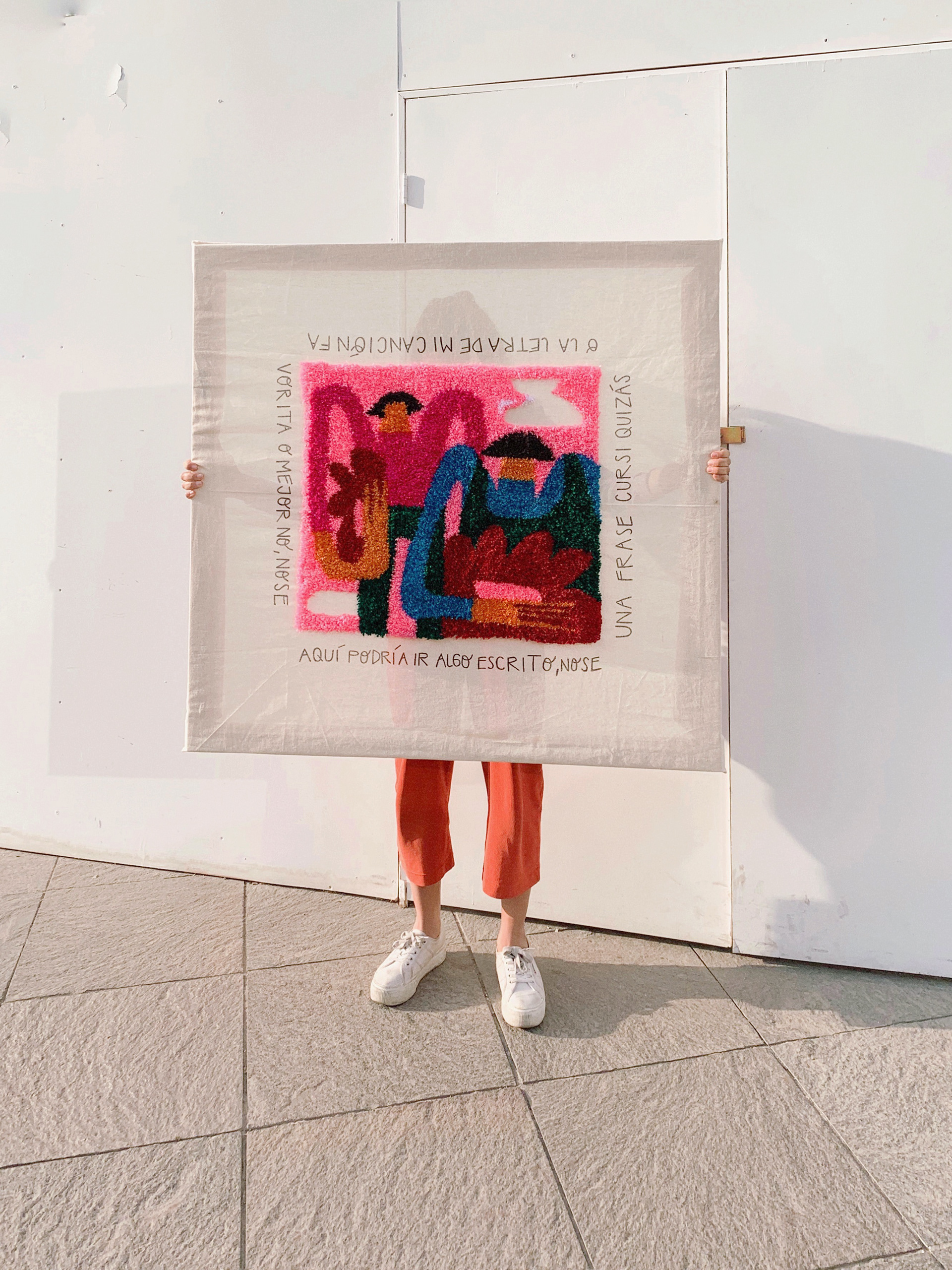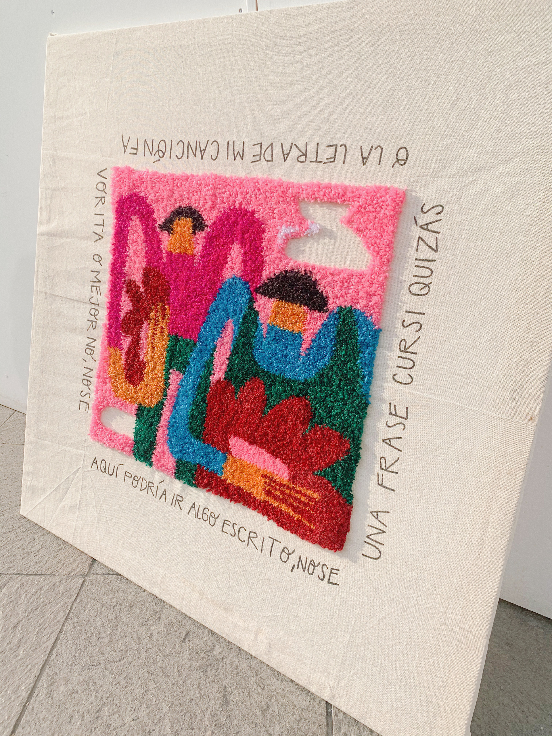 bordado punch needle para exposición en freak galería de arte - fue desafiante bordar algo tan grande, lo más lindo fue el tiempo que pasé pensando en las mujeres que me inspiran, disfrutando de hacer algo por el revés y no por el derecho, tomando decisiones improvisadas, creyendo que no lograría terminar, tomando distancia y entrecerrando los ojos como si de esa forma lograra ver algo distinto.