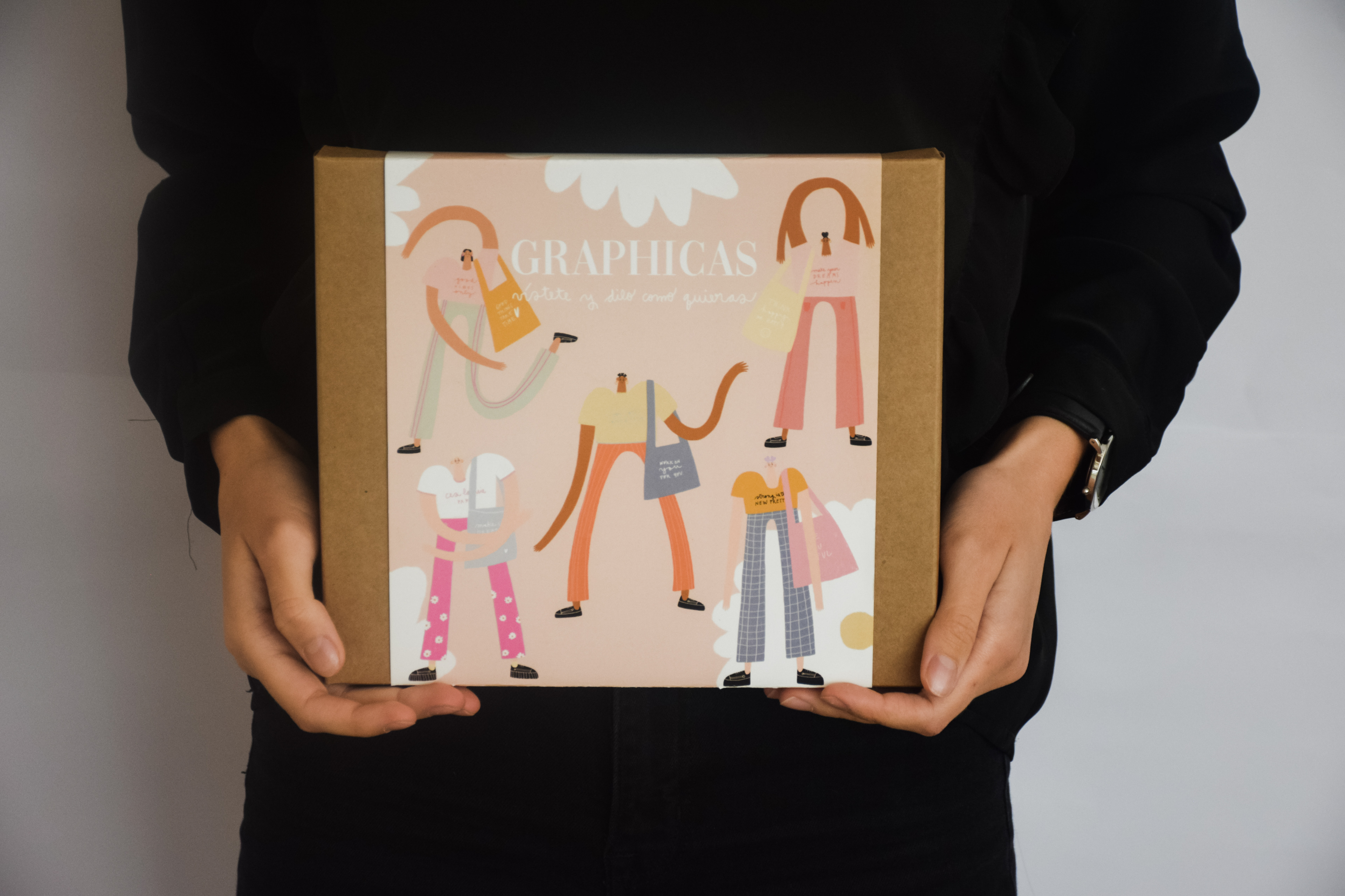 colaboración con tienda de ropa graphicas - diseño e ilustración de franja de cierre para cajas de envíos.