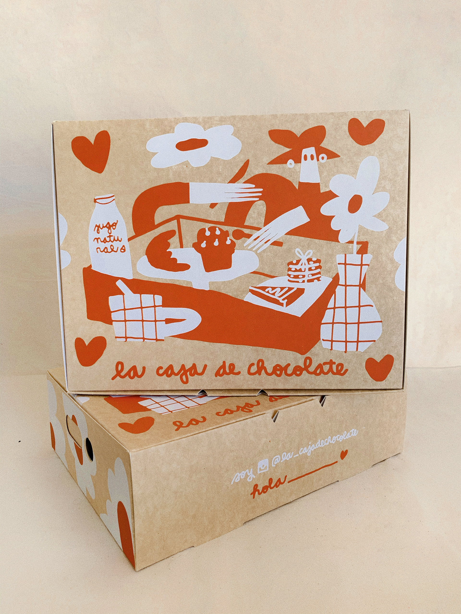 colaboración con emprendimiento de desayunos a domicilio - diseño de packaging impreso con serigrafía a dos tonos.