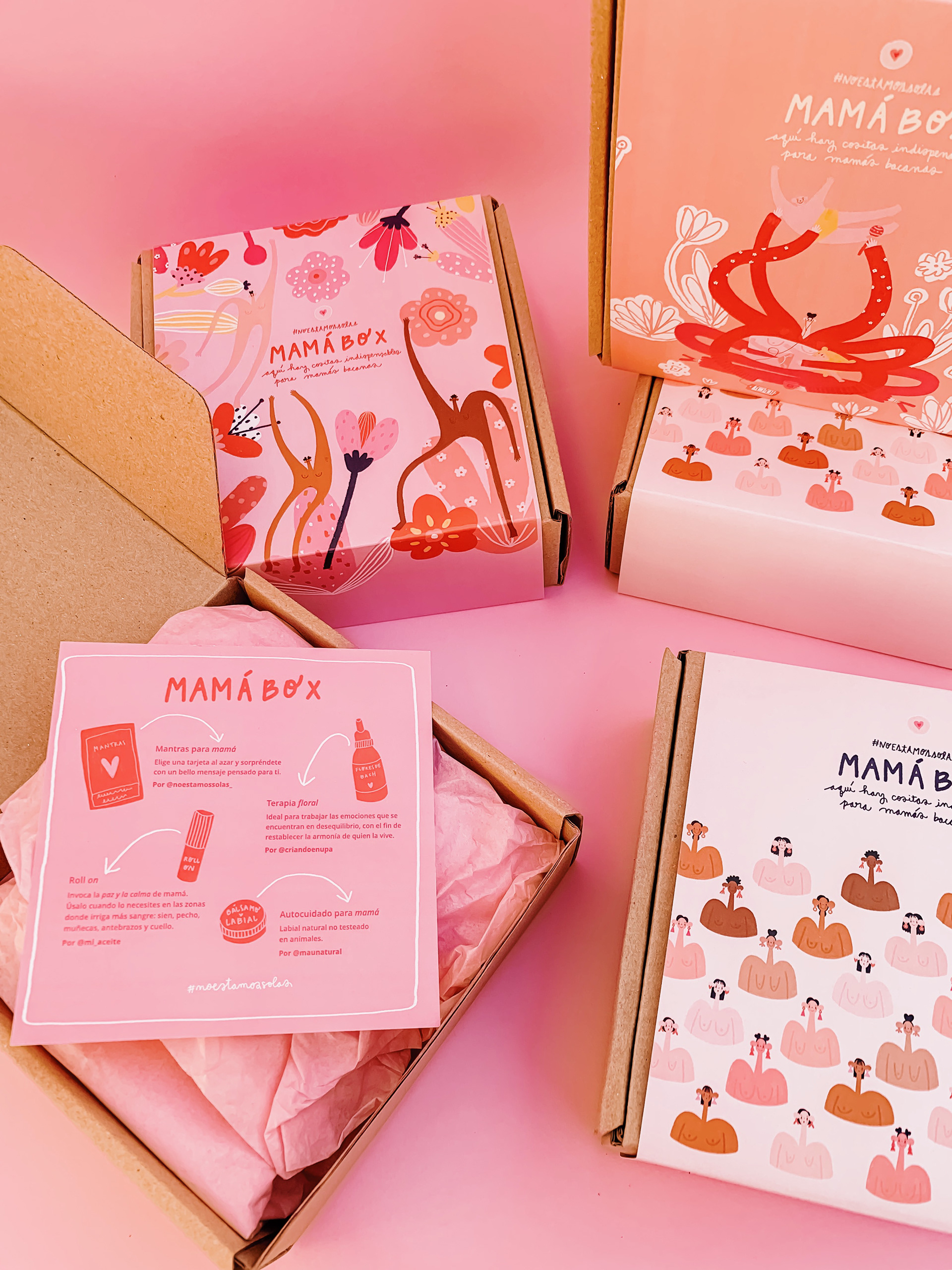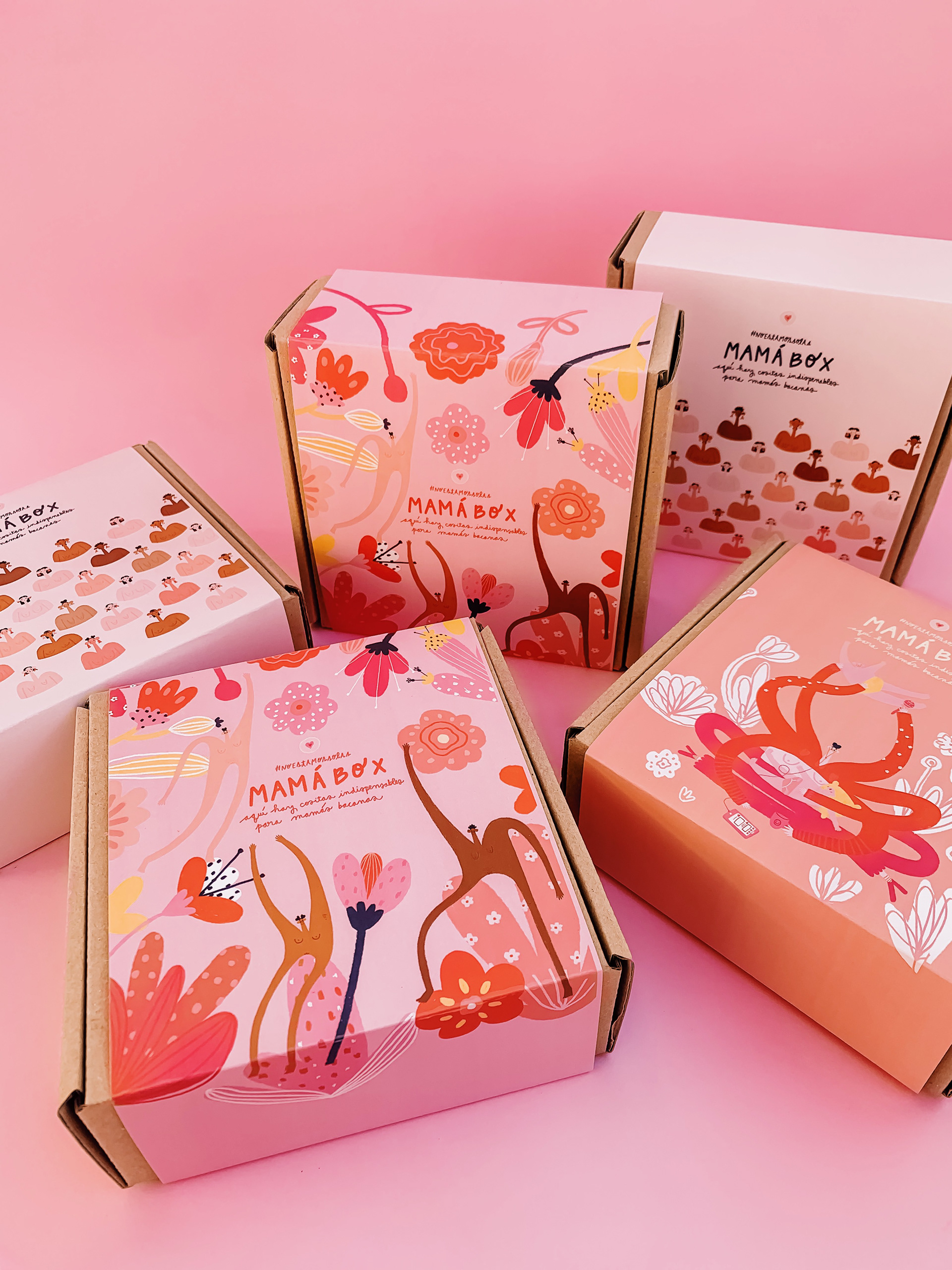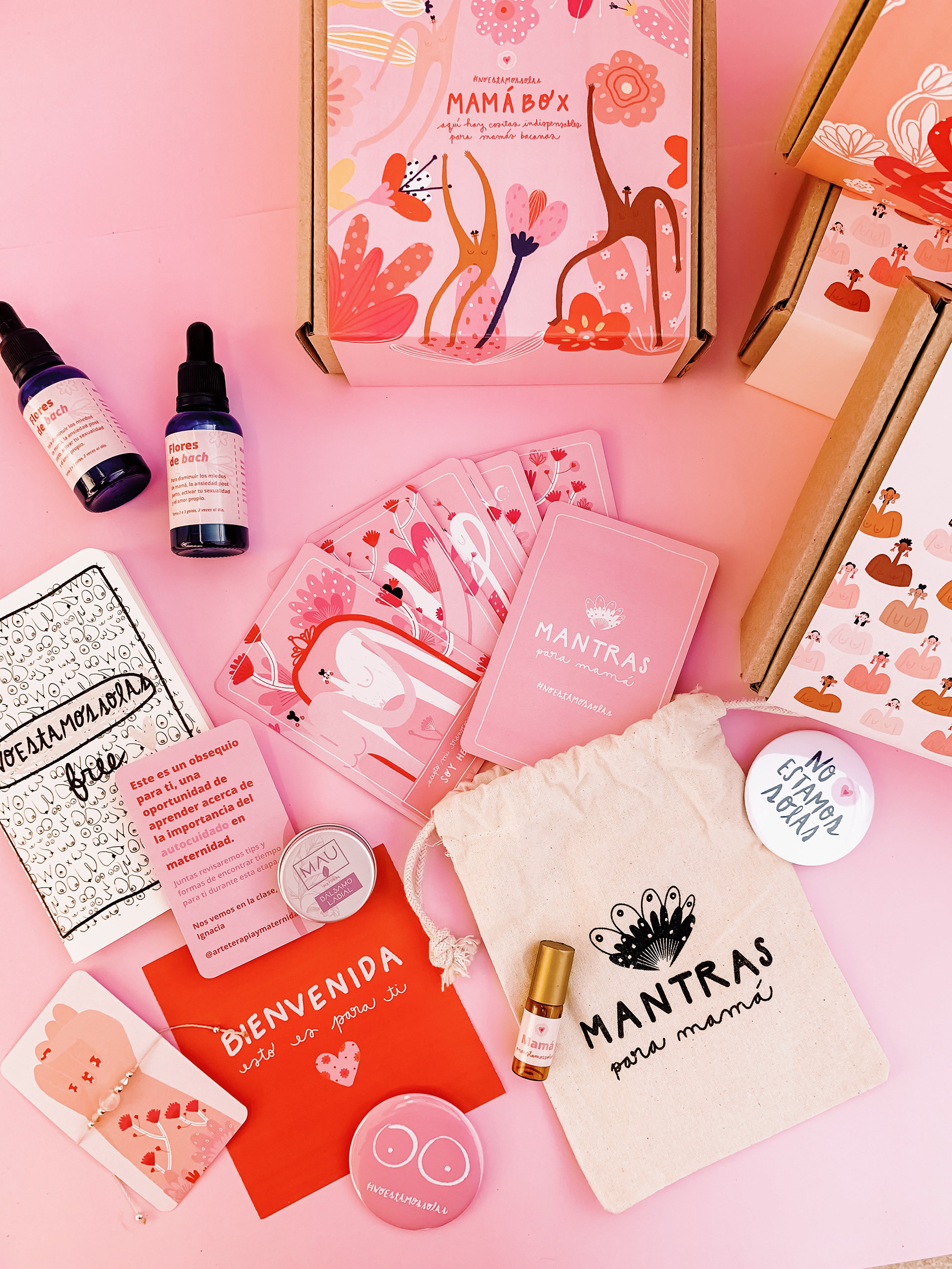 colaboración con proyecto que fomenta la lactancia libre - diseño e ilustración para franjas de cierre, tarjeta de bienvenida, cartas de mantras e información y etiqueta de productos.