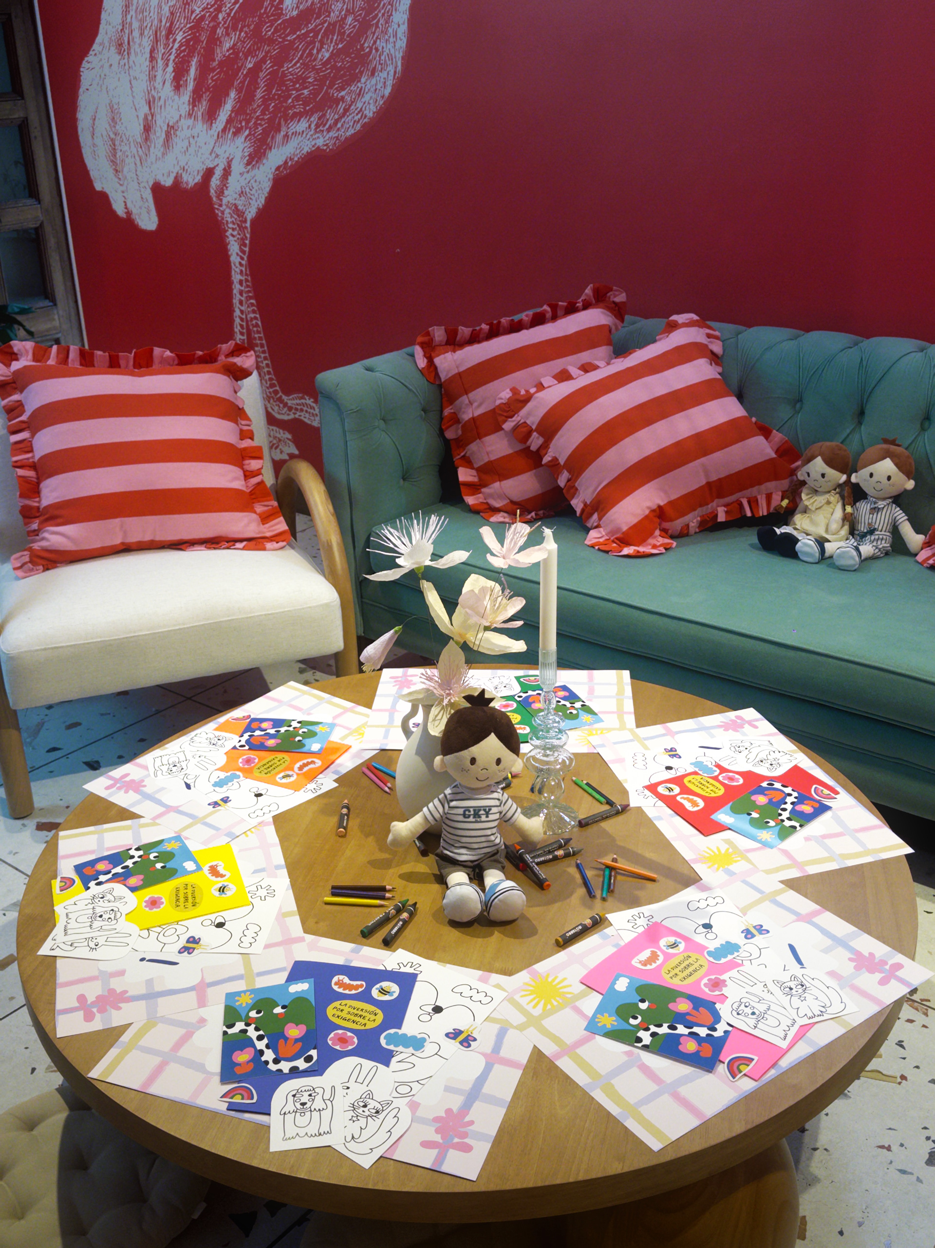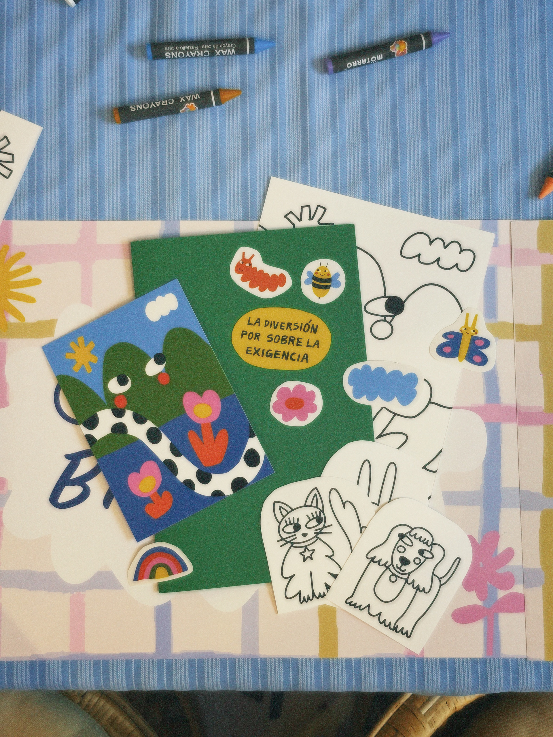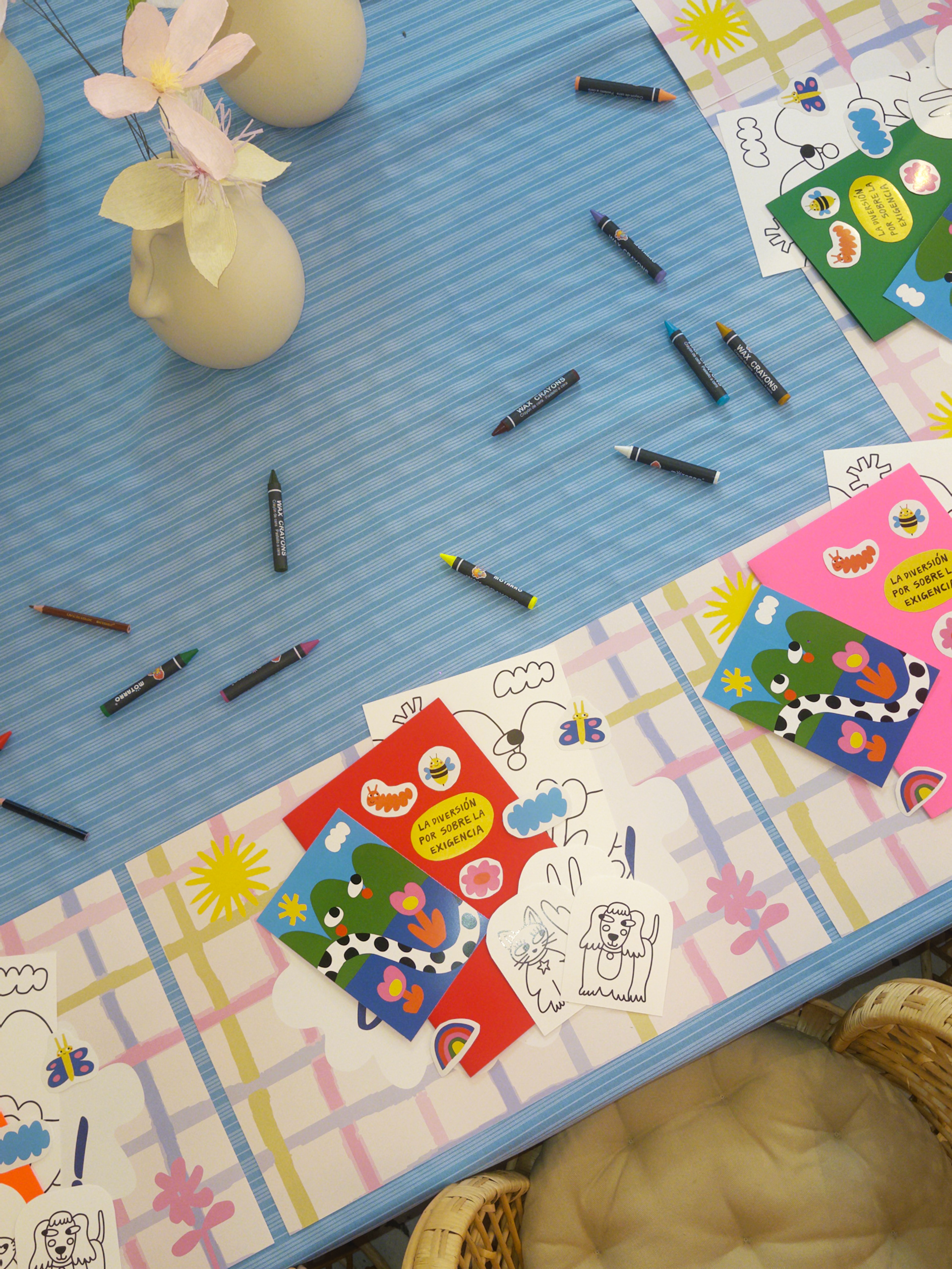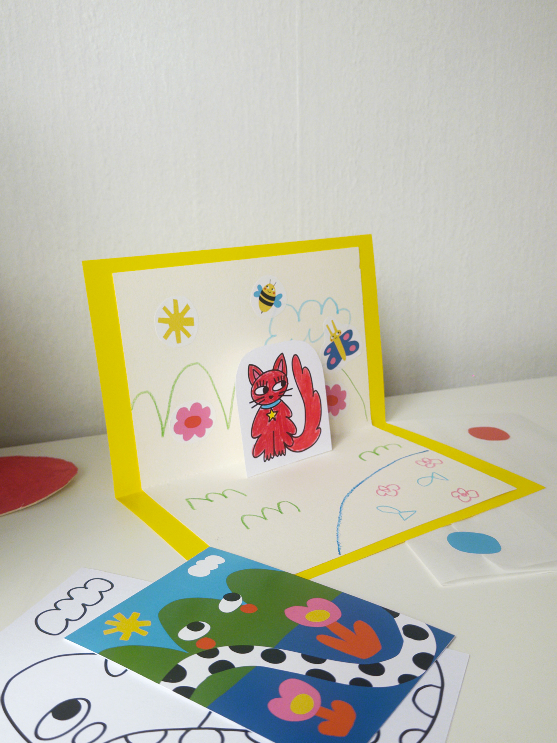 este taller ha sido pensado para fomentar la autoexpresión, motricidad fina e imaginación en un ambiente seguro, relajado y divertido. idea del taller: personalizar el interior de una tarjeta tipo pop-up, usando lápices de colores y stickers y personajes diseñados especialmente para el taller.